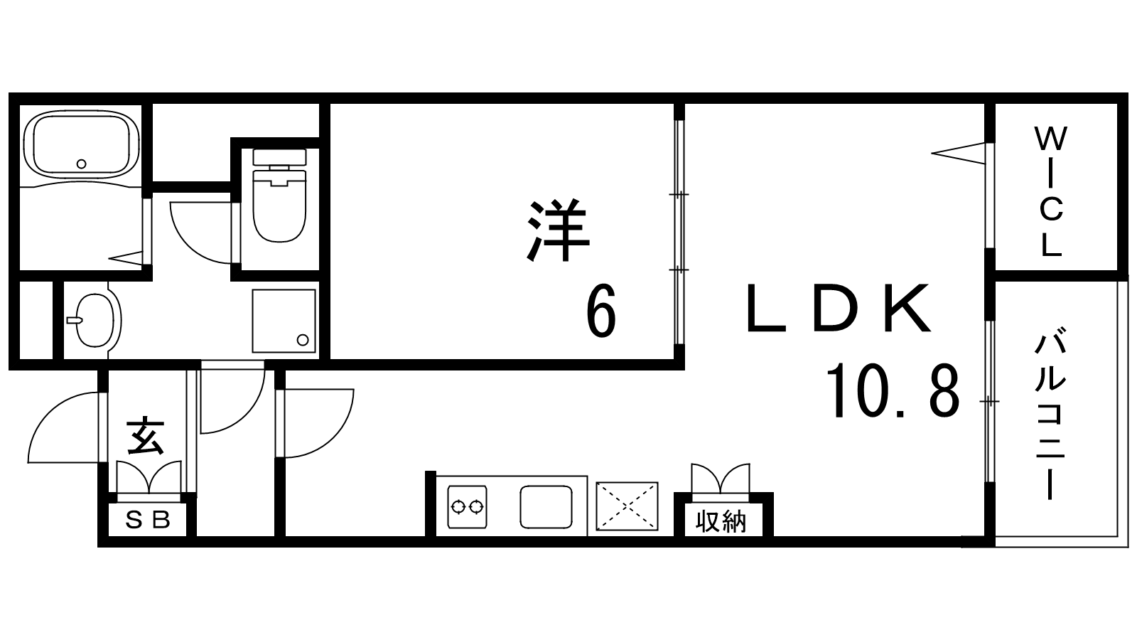 - LDK10.8帖、洋室6帖