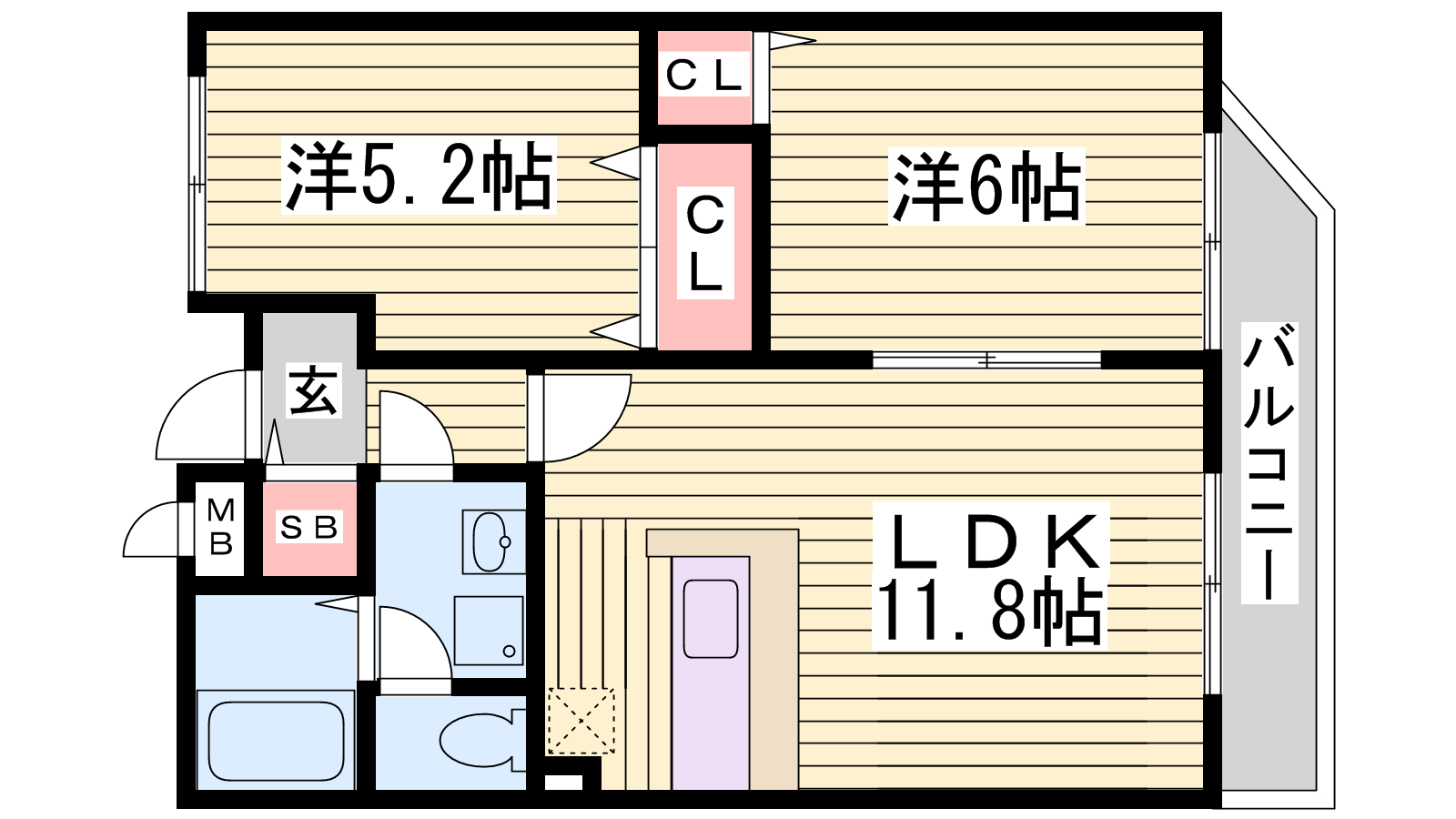 - LDK11.8帖、洋室6帖、洋室5.2帖