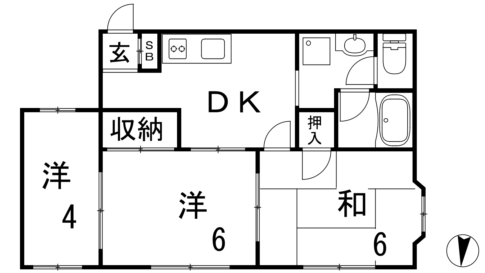 - DK6帖、洋室6帖、洋室4帖、和室6帖