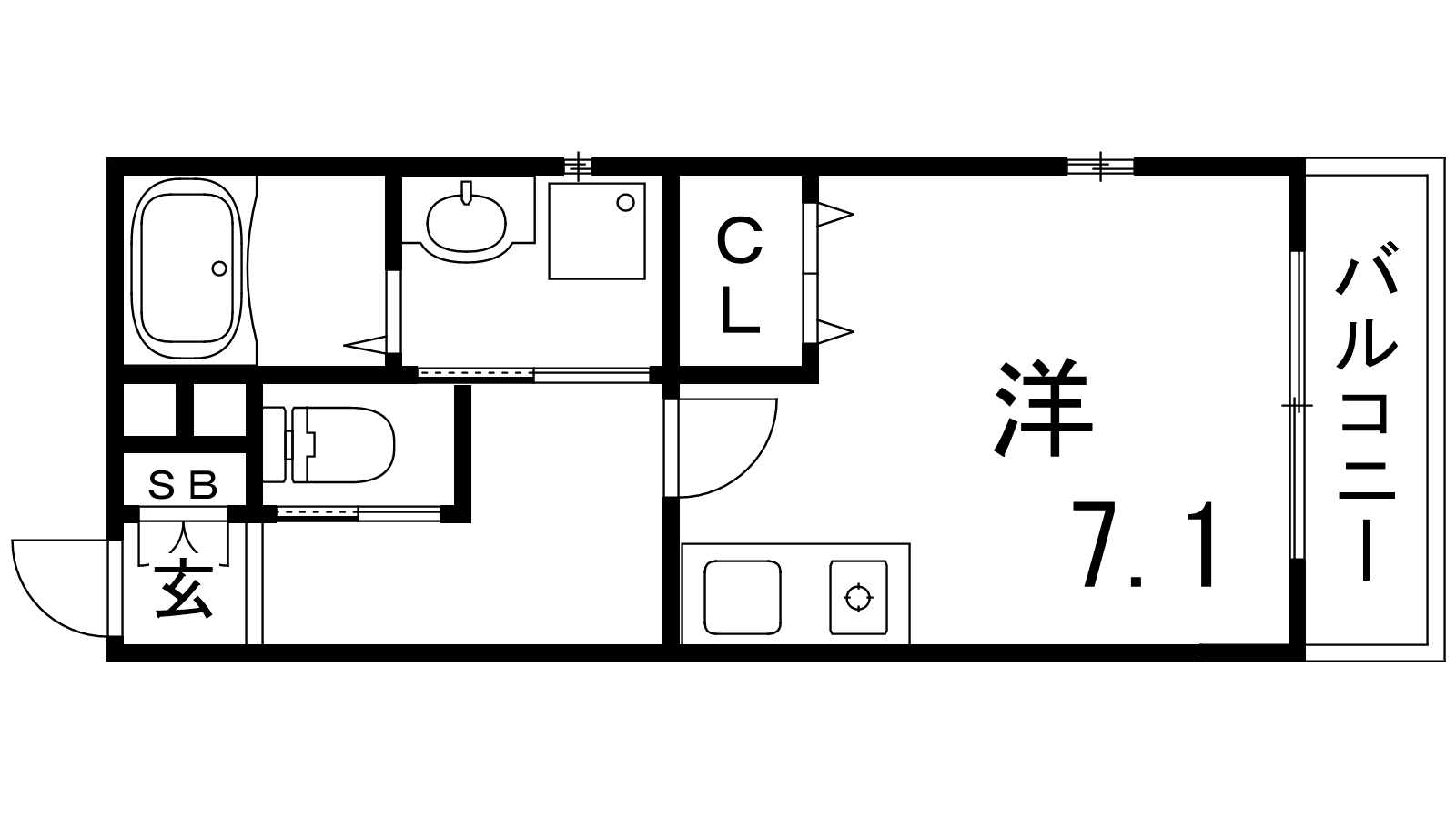- K2帖、洋室7.1帖