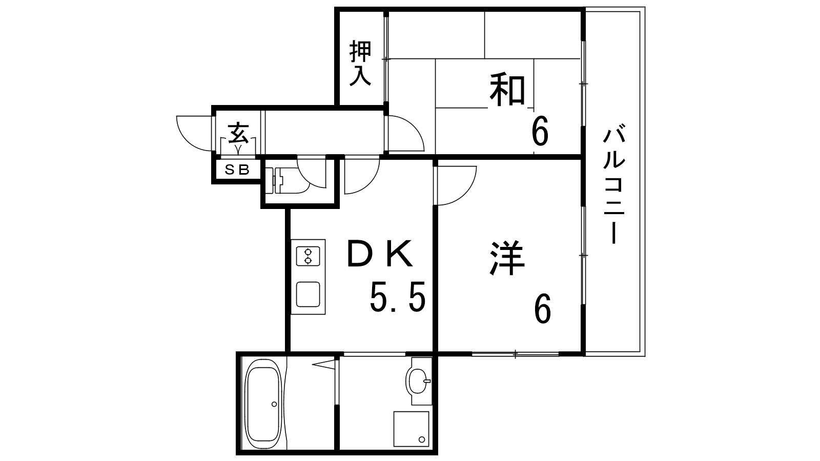 - LDK5.5帖、洋室6帖、和室6帖