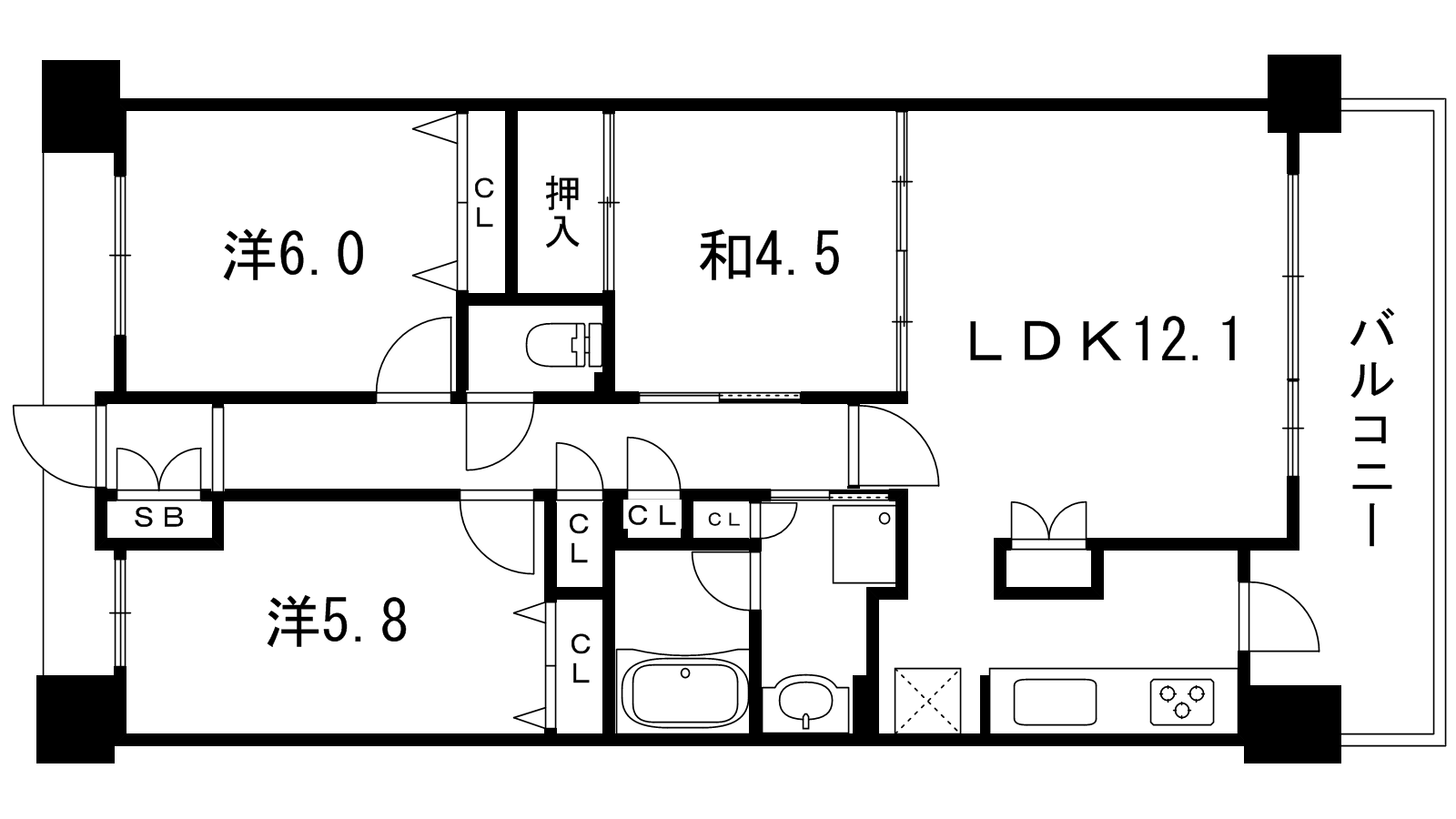 - LDK12.1帖、洋室6帖、洋室5.8帖、和室4.5帖