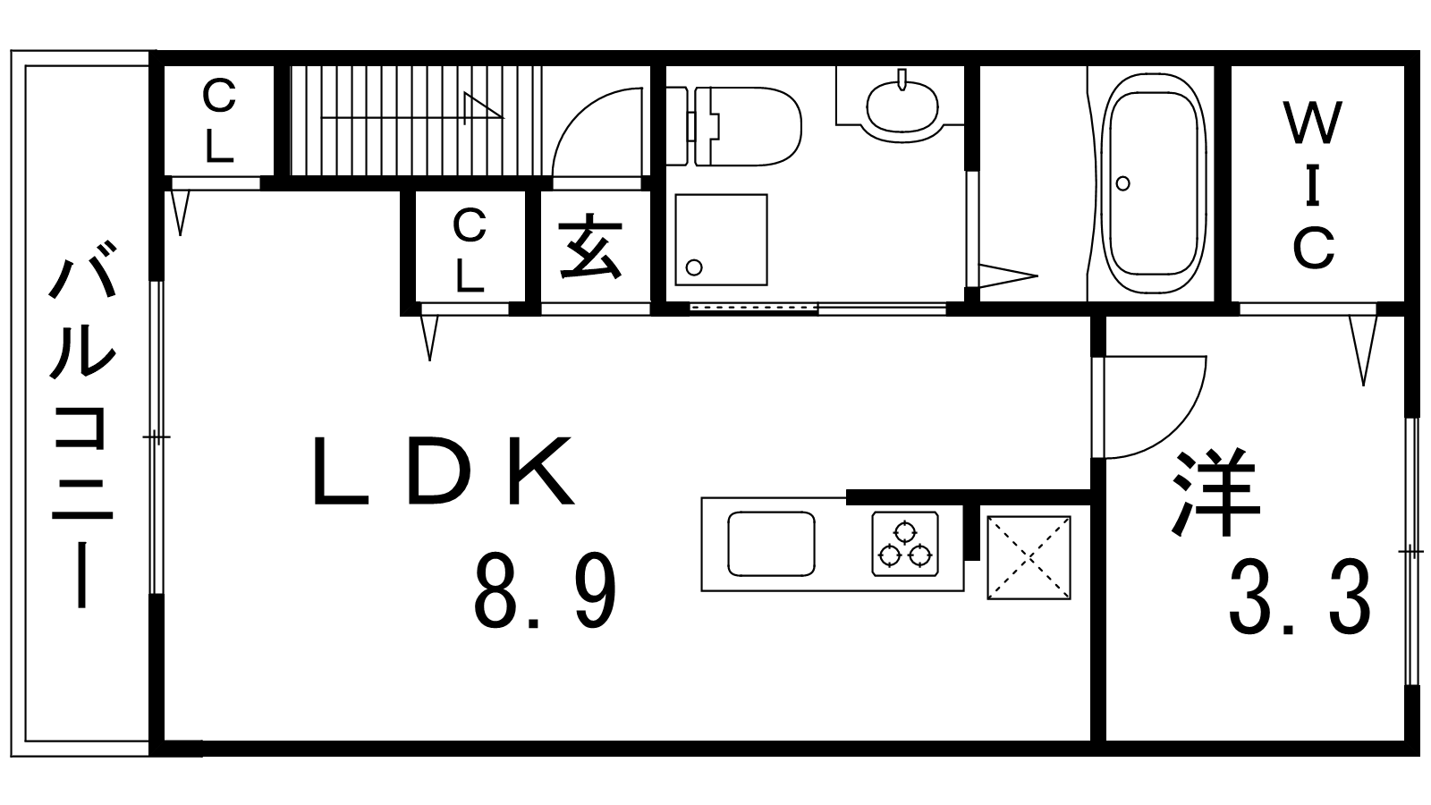 - LDK8.9帖、洋室3.8帖