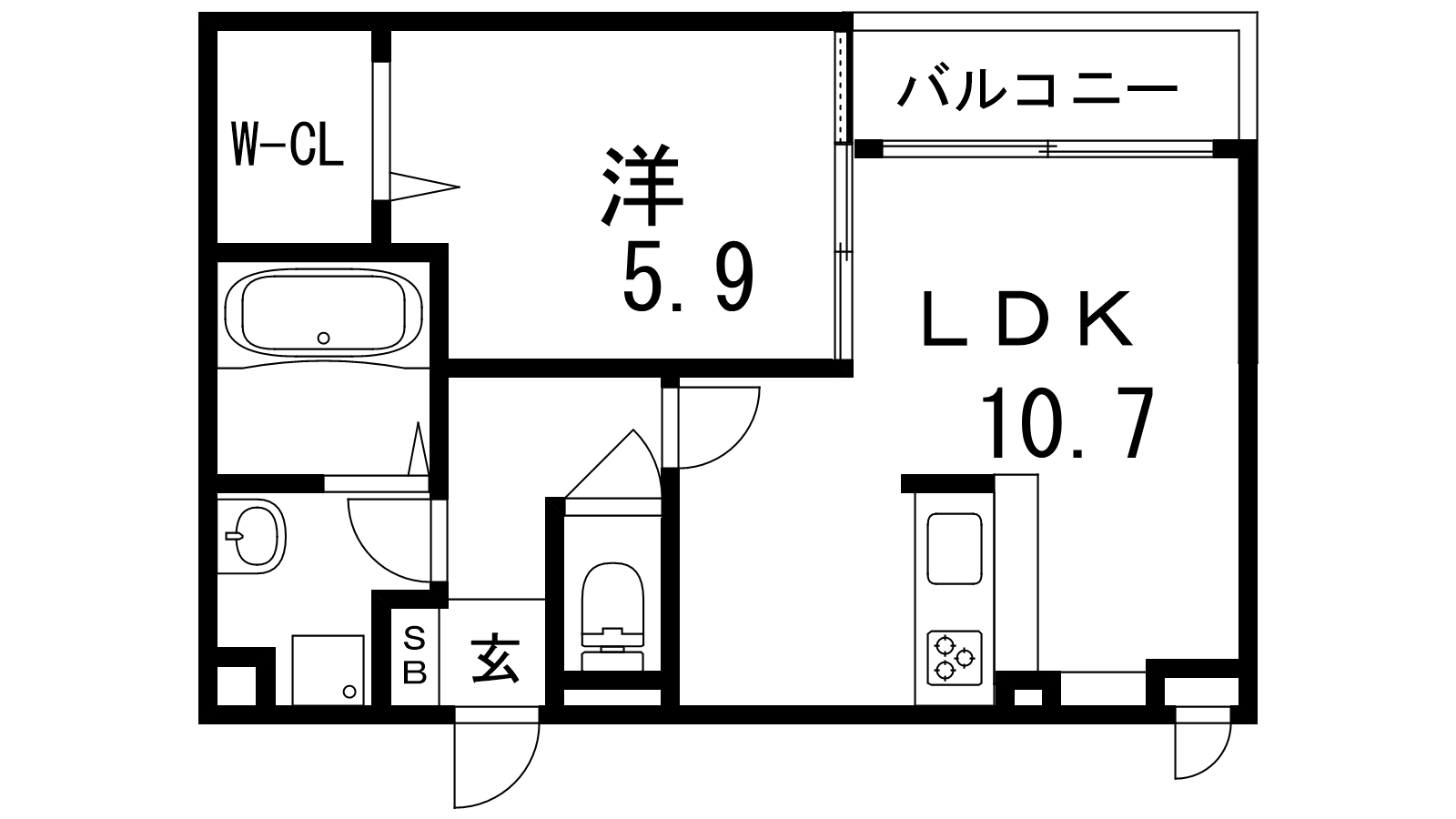 - LDK10.7帖、洋室5.9帖