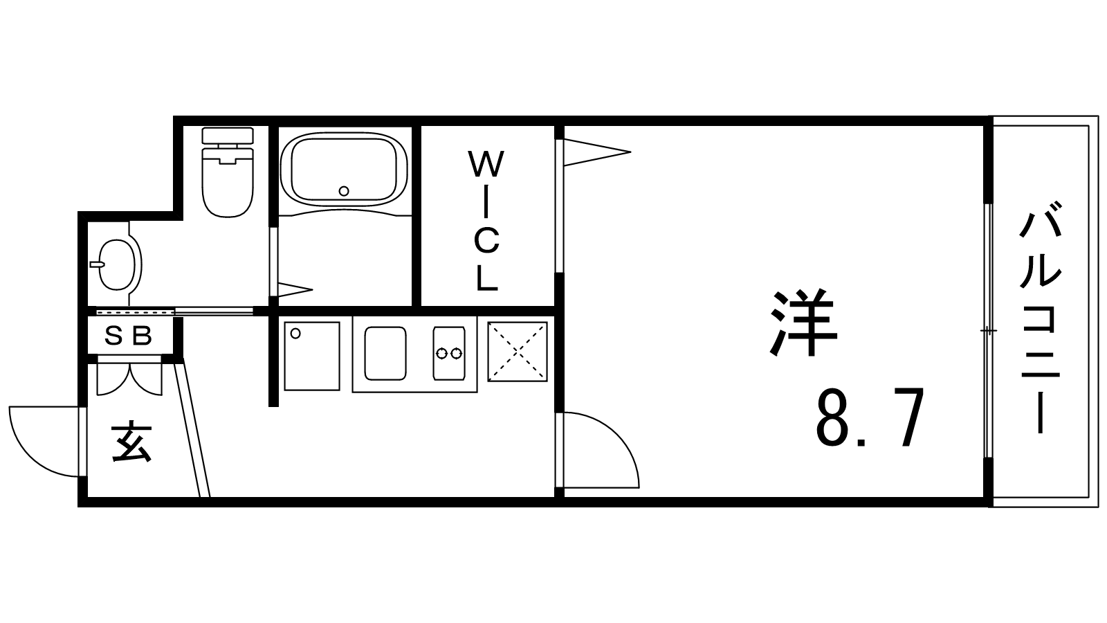 - K2帖、洋室8.7帖
