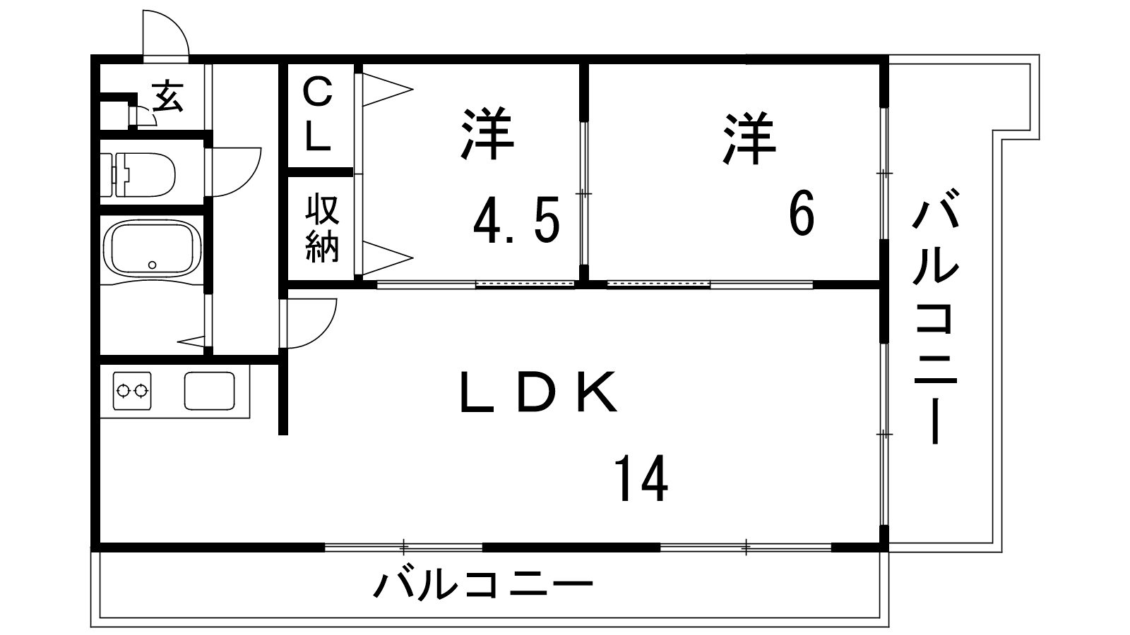 - LDK14帖、洋室4.5帖、洋室6帖