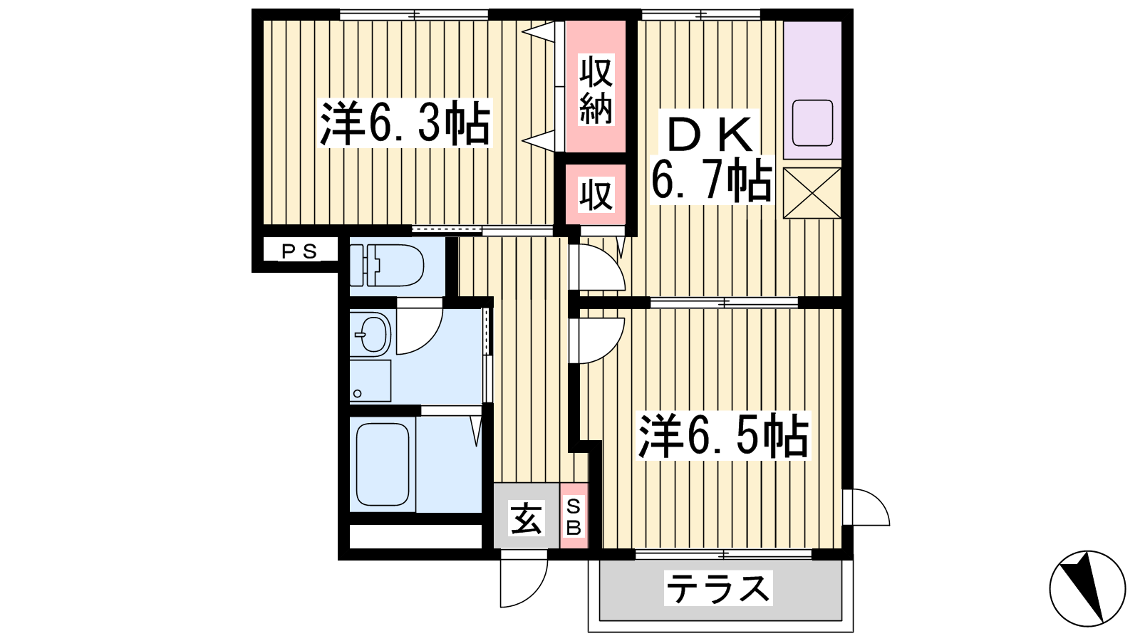 - DK6.7帖、洋室6.5帖、洋室6.3帖