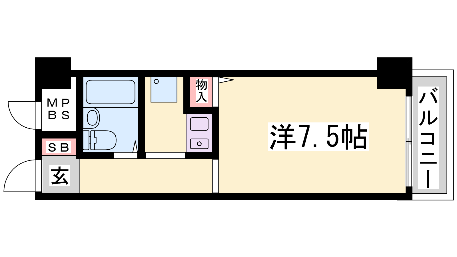 - K2帖、洋室7.5帖