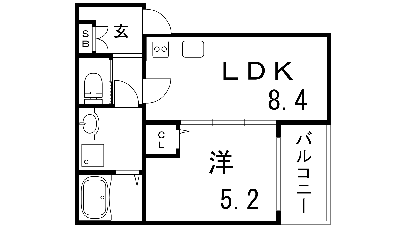 - LDK8.4帖、洋室5.2帖