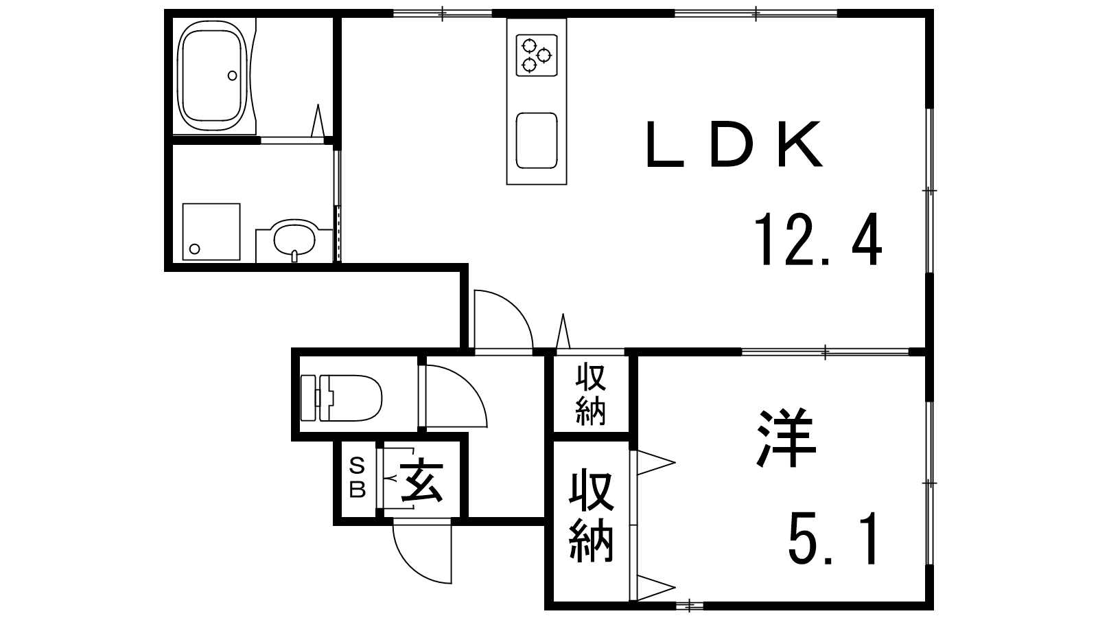- LDK12.4帖、洋室5.1帖