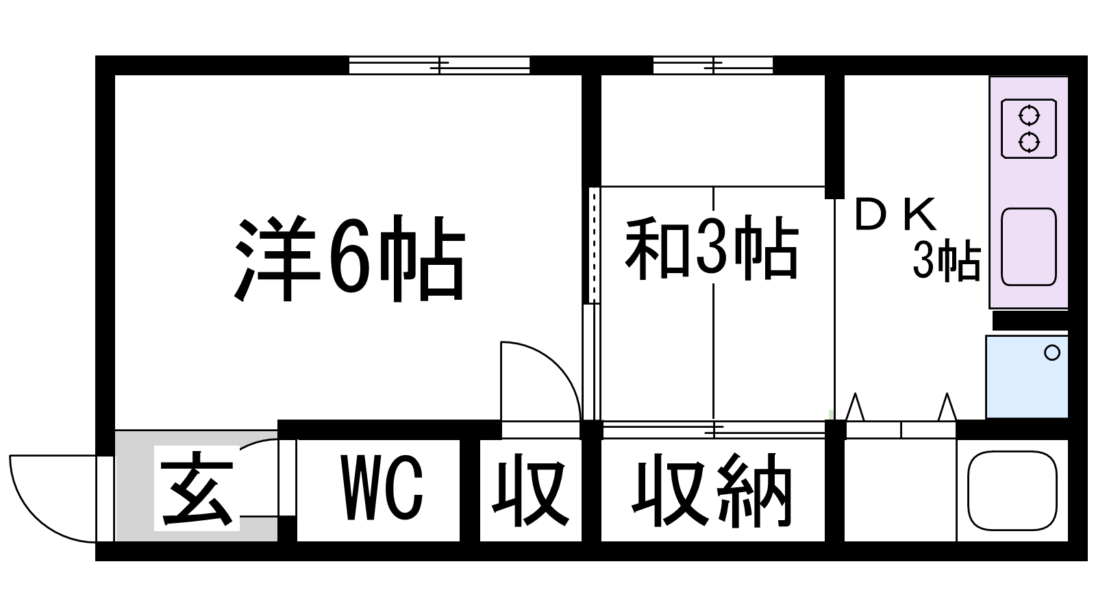 - DK3帖、和室6帖、洋室3帖