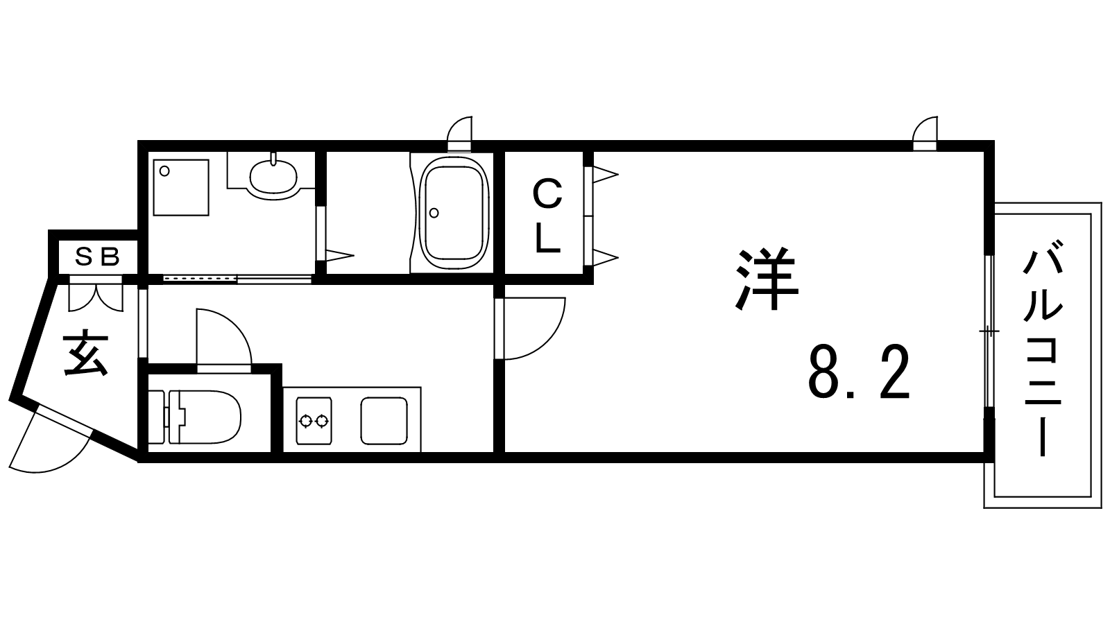 - K2帖、洋室8.2帖