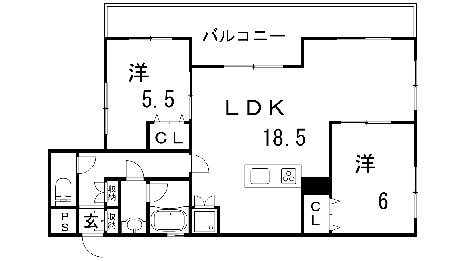 - LDK18.5帖、洋室6帖、洋室5.5帖
