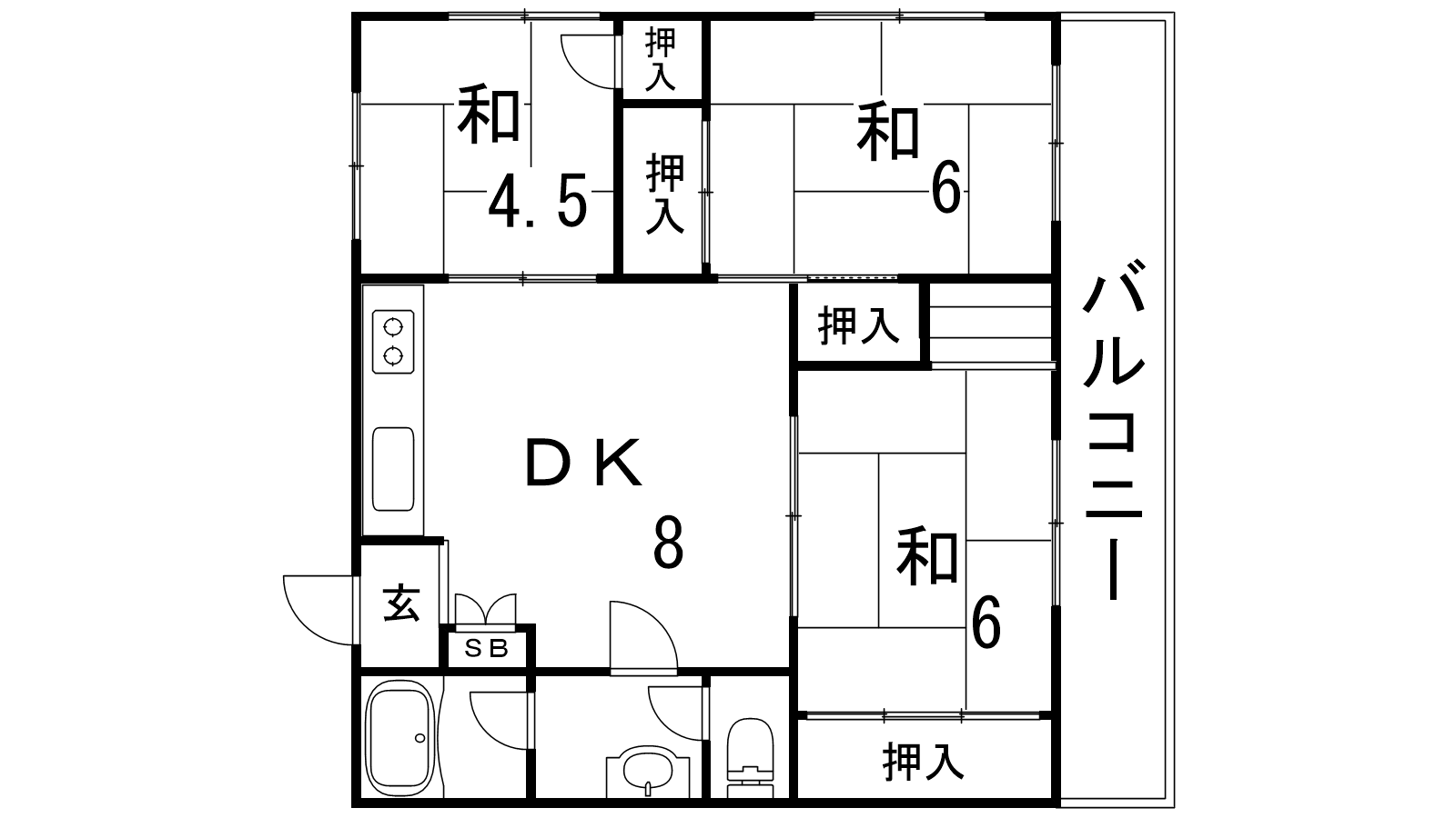 - DK8帖、和室6帖、和室6帖、和室4.5帖