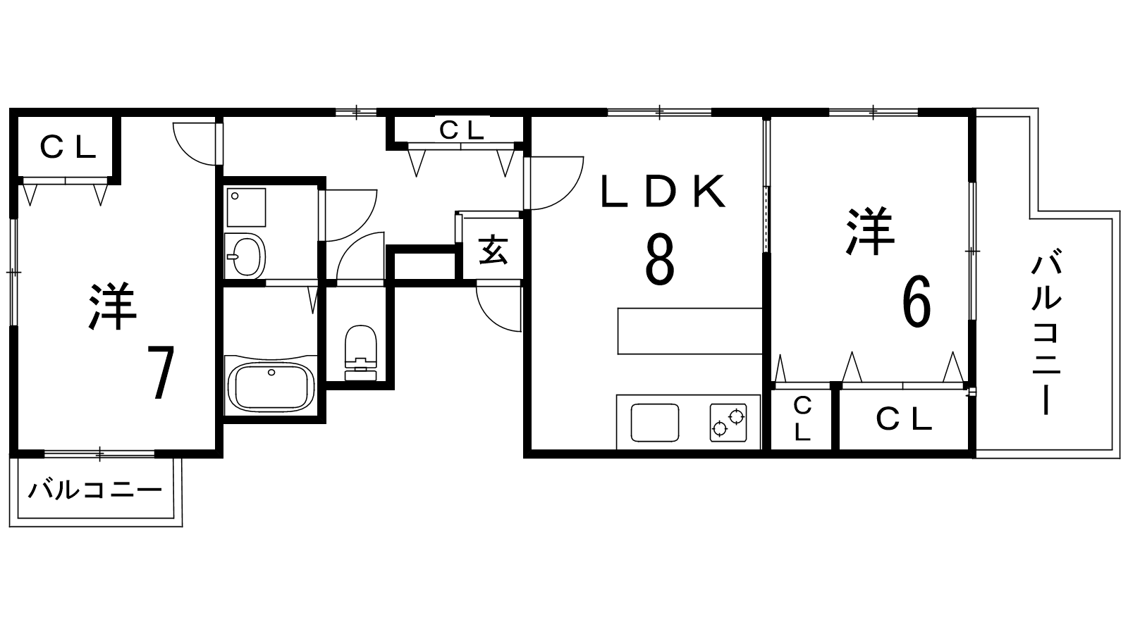 - LDK8帖、洋室7帖、洋室6帖