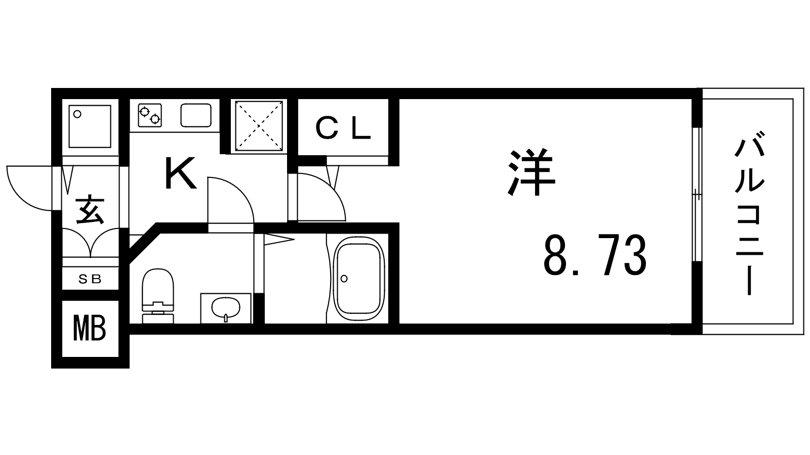 - K1.5帖、洋室8.73帖