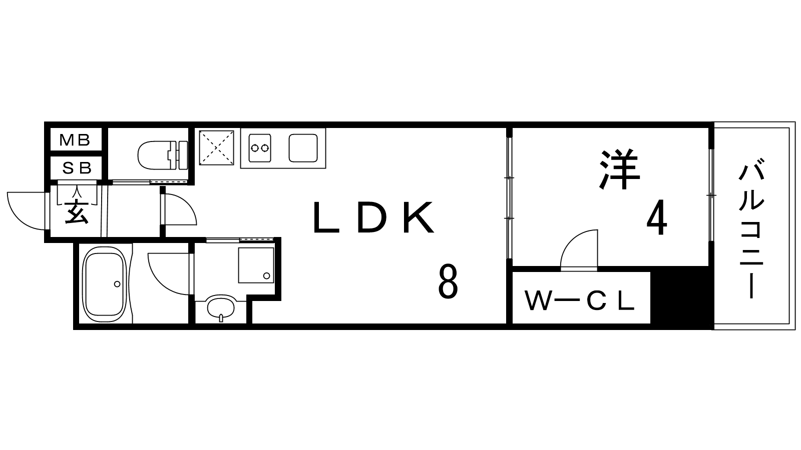 - LDK8帖、洋室4帖