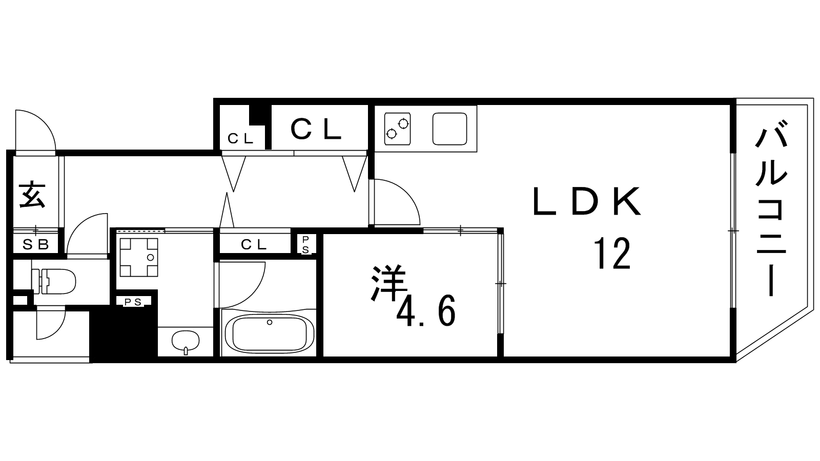 - LDK12帖、洋室4.6帖