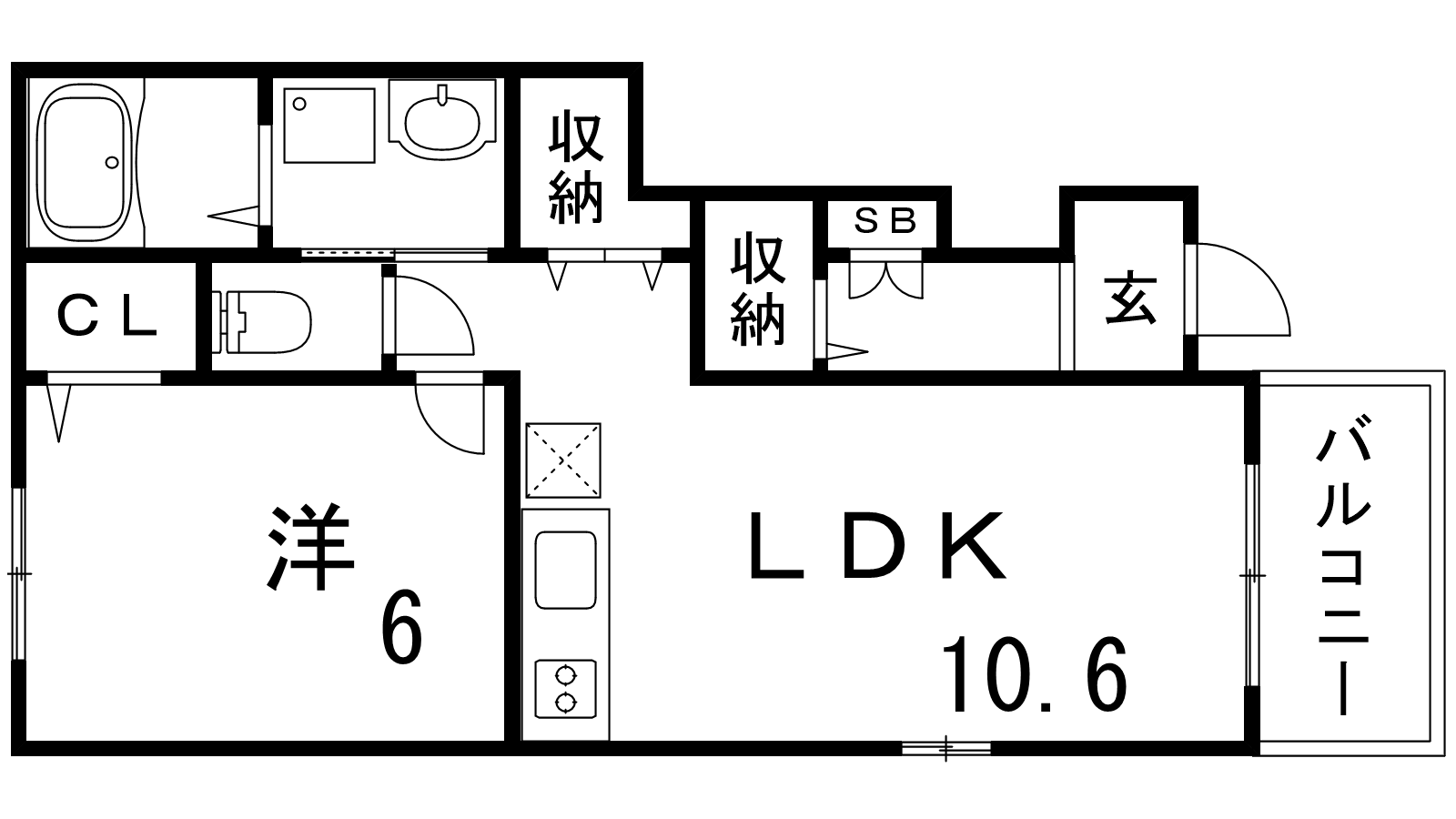 - LDK10.6帖、洋室6帖