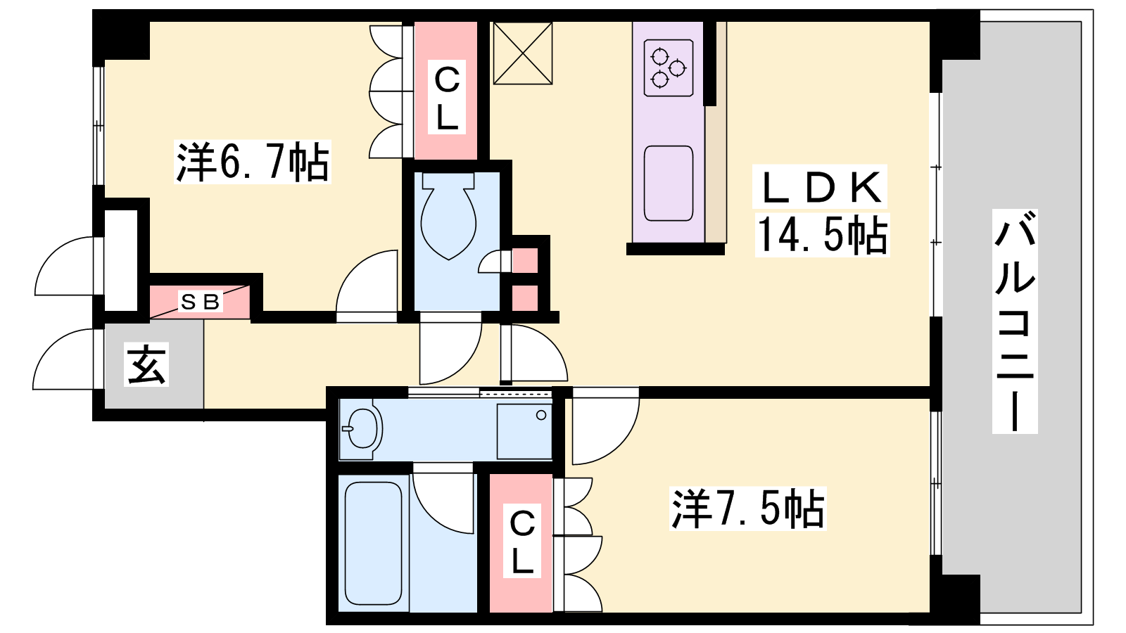 - LDK14.5帖、洋室6.7帖、洋室7.5帖