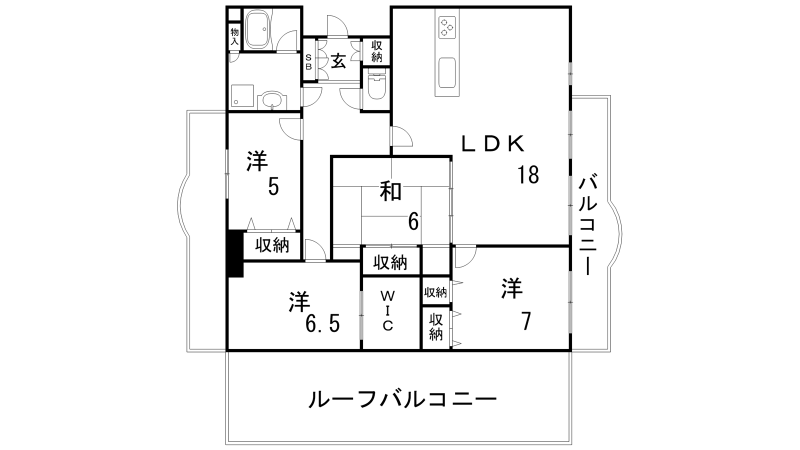 - LDK18帖、洋室7帖、洋室6.5帖、洋室5帖、和室6帖