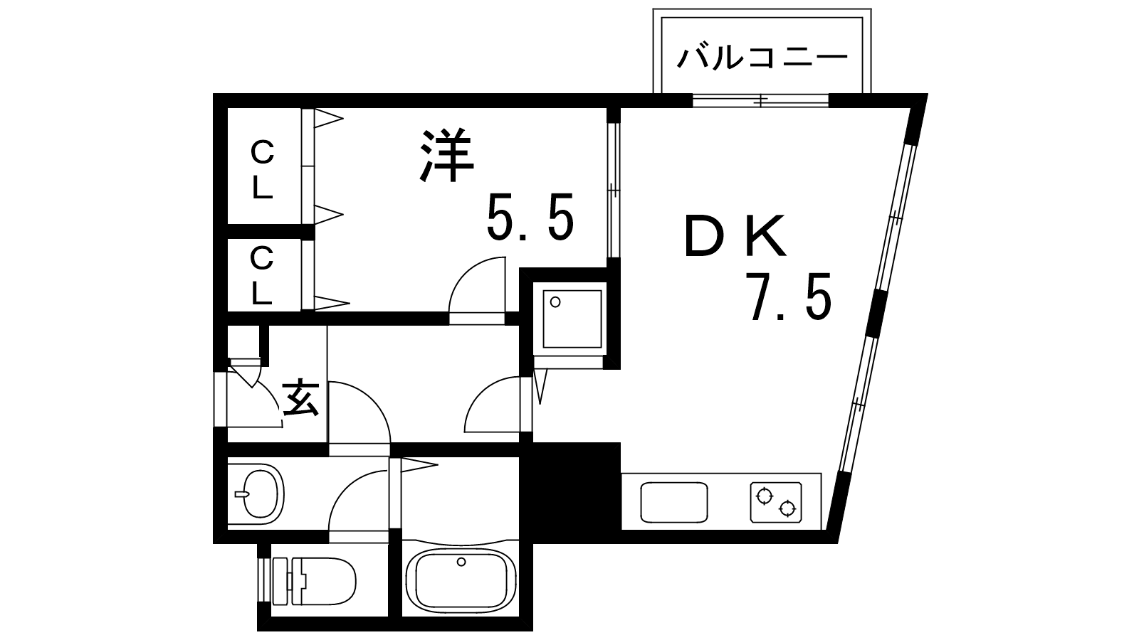 - DK7.5帖、洋室5.5帖