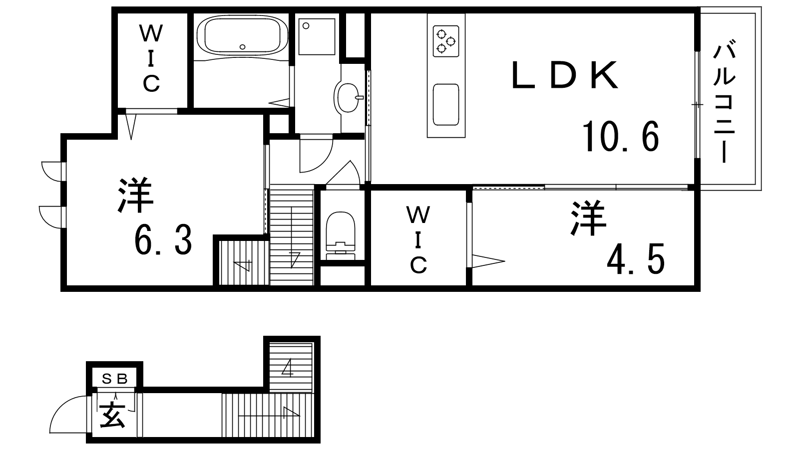 - LDK10.5帖、洋室6.3帖、洋室4.5帖