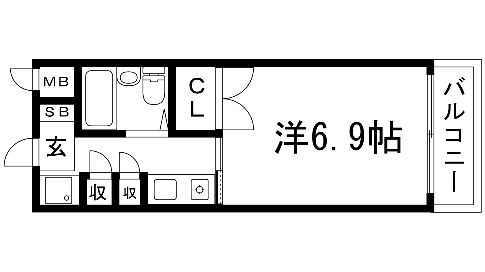 - K2帖、洋室6.9帖