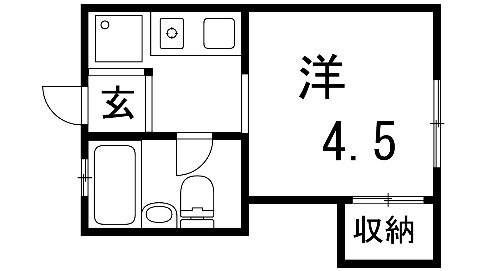 - K2帖、洋室4.5帖