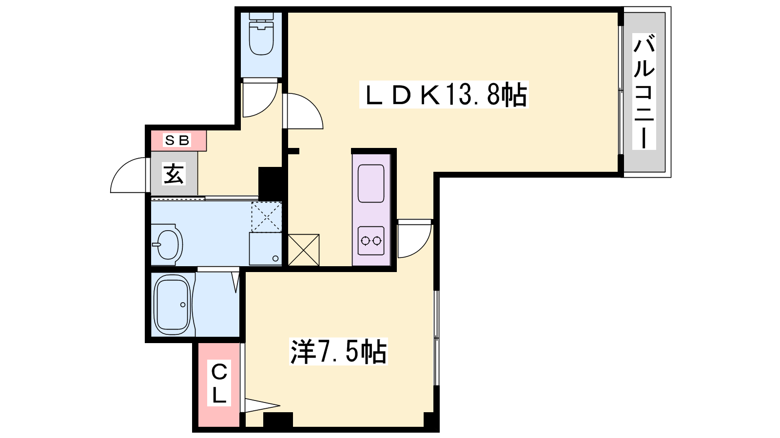 - LDK13.8帖、洋室7.5帖