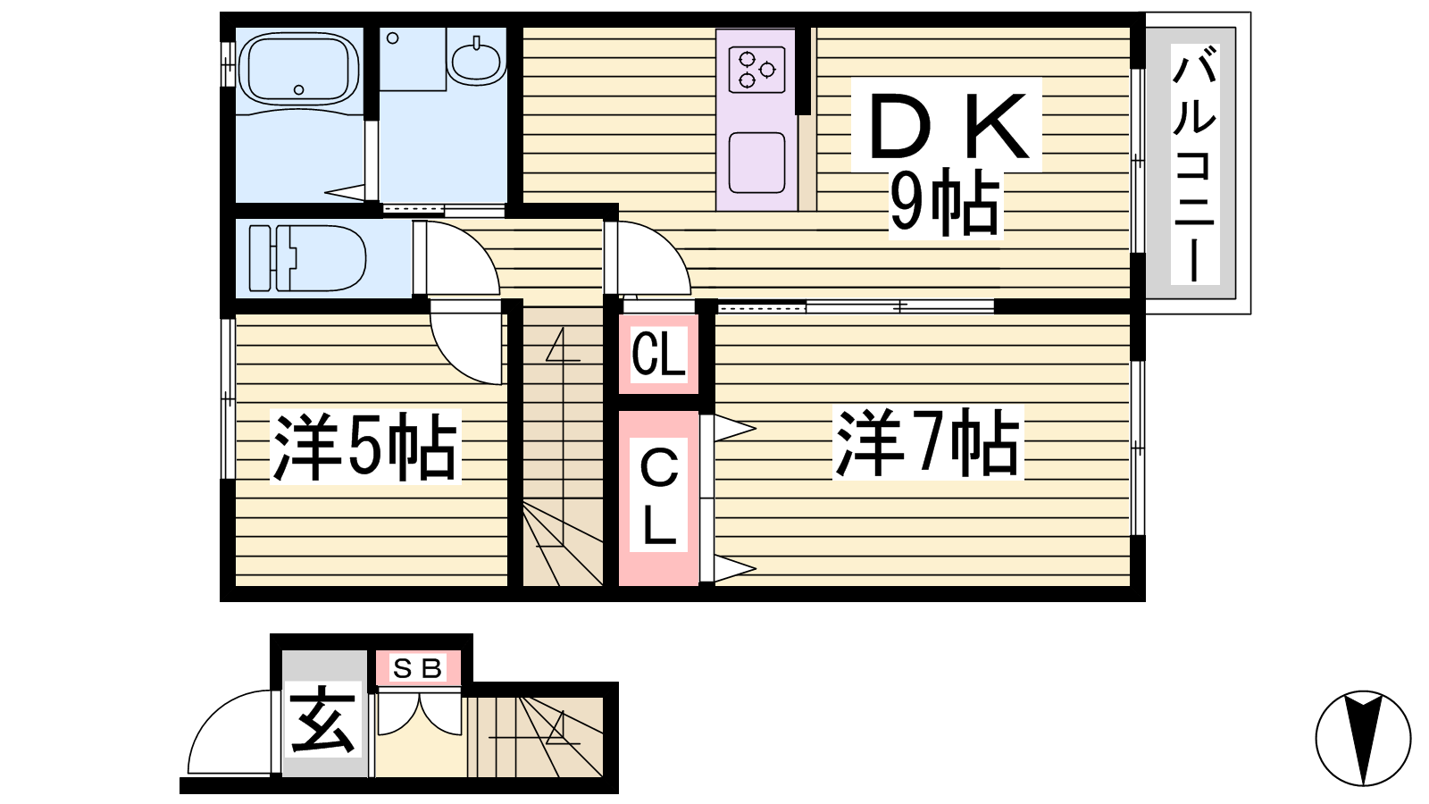 - DK9帖、洋室7帖、洋室5帖