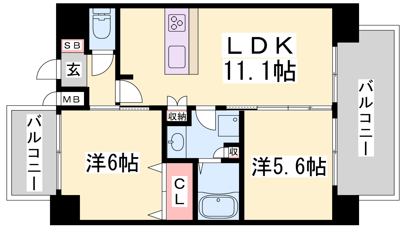 - LDK11.1帖、洋室6帖、洋室5.6帖