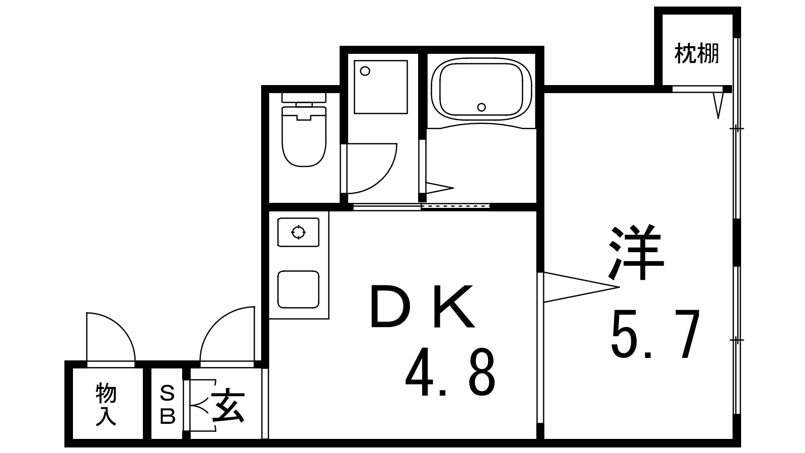 - DK4.8帖、洋室5.7帖