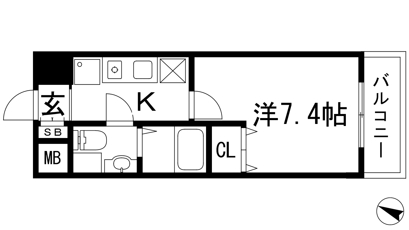 - K3帖、洋室7.4帖