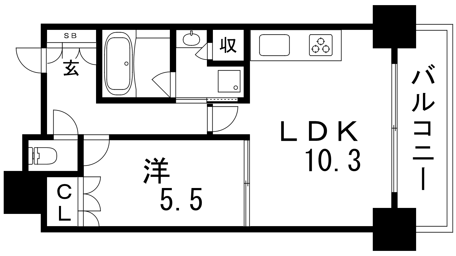- LDK10.3帖、洋室5.5帖