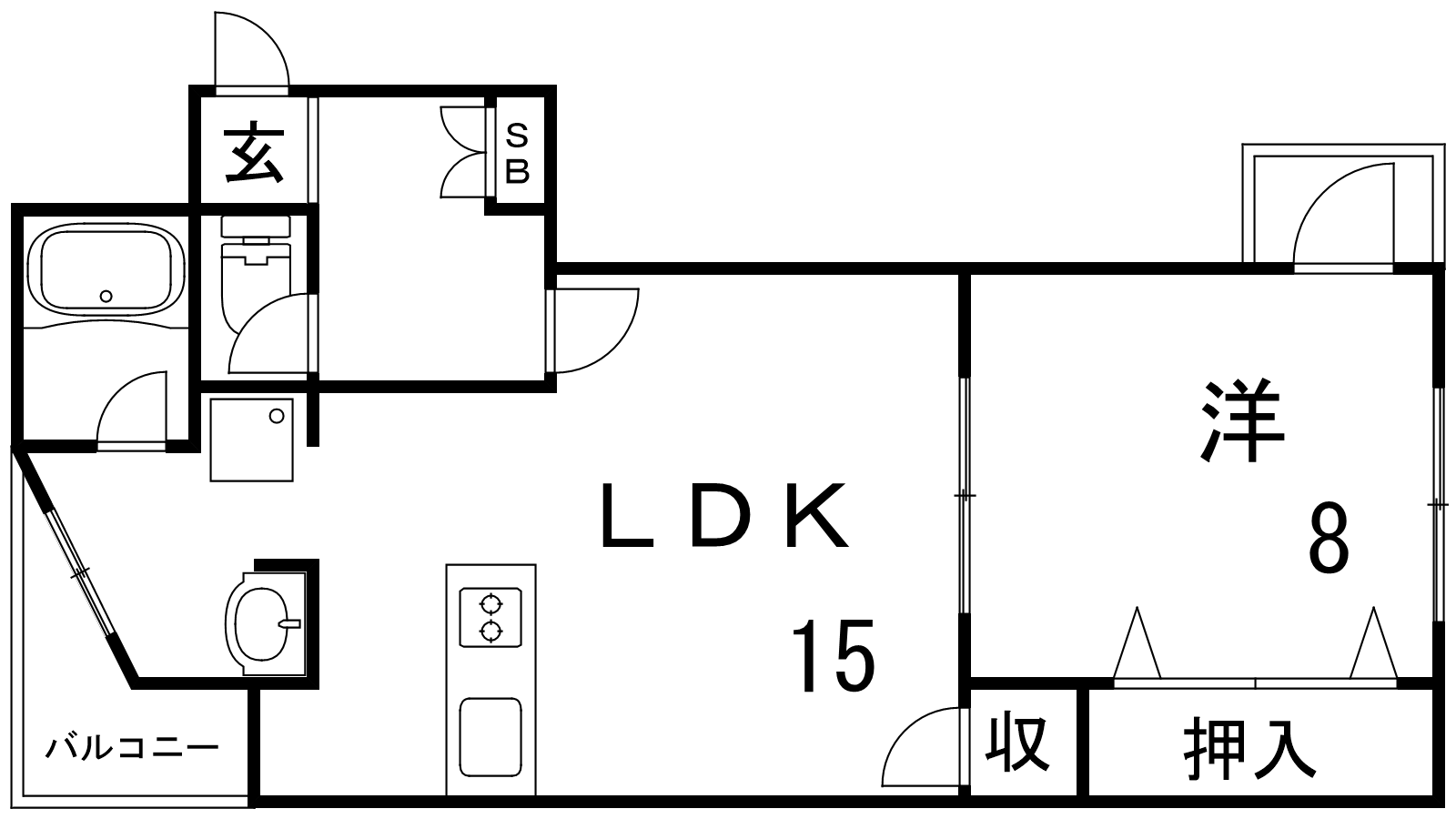 - LDK15帖、洋室8帖