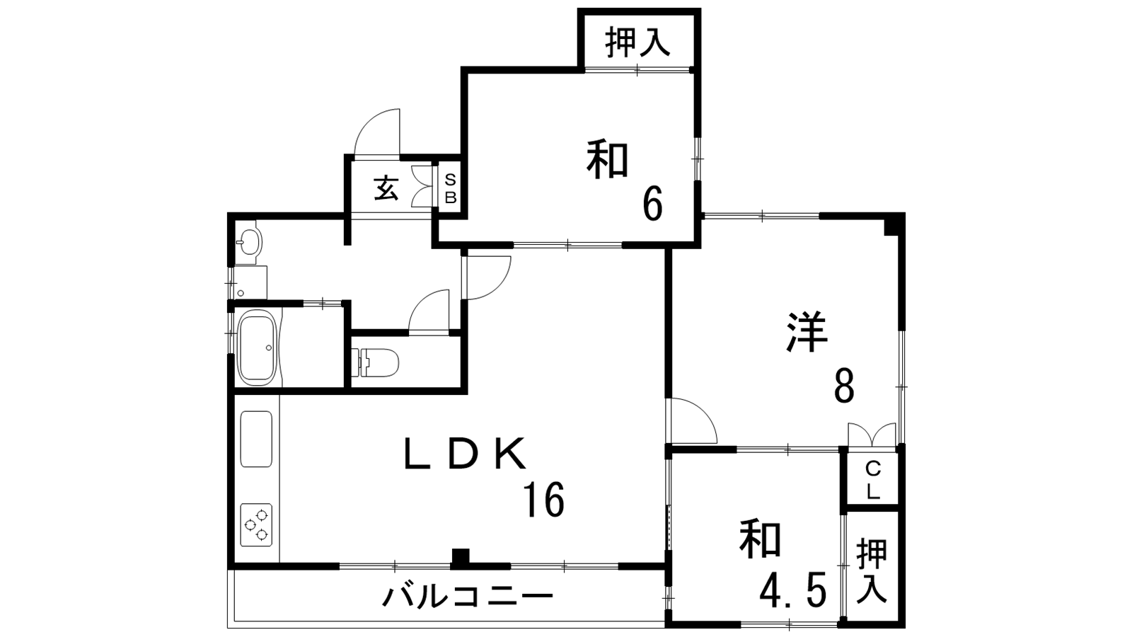 - LDK16帖、洋室8帖、和室6帖、和室4.5帖