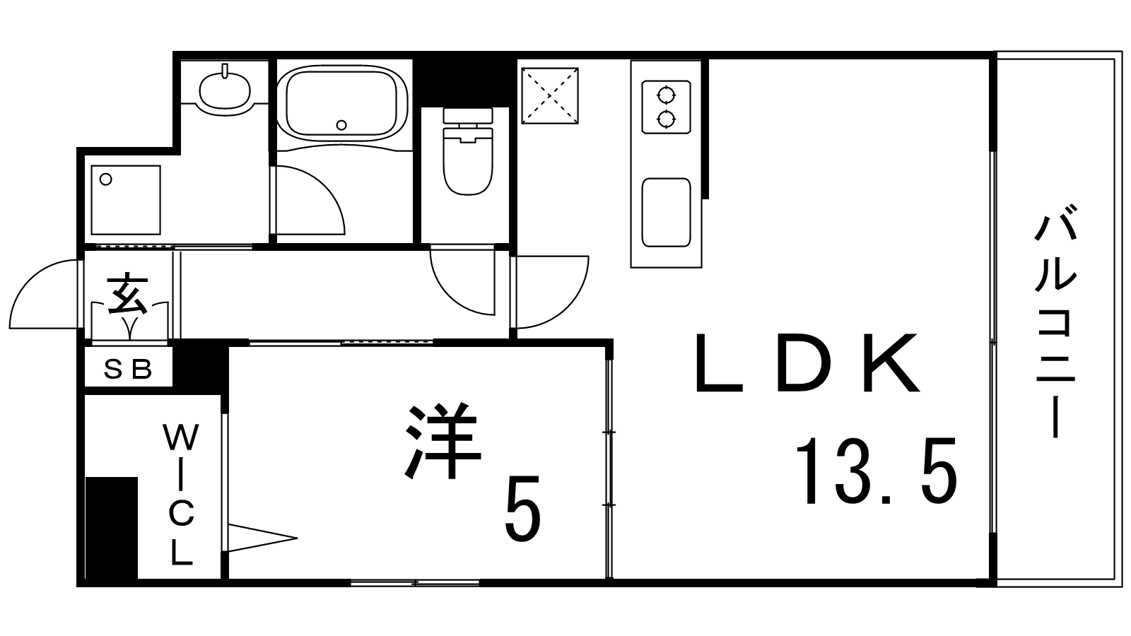 - 洋室5帖、LDK13.5帖