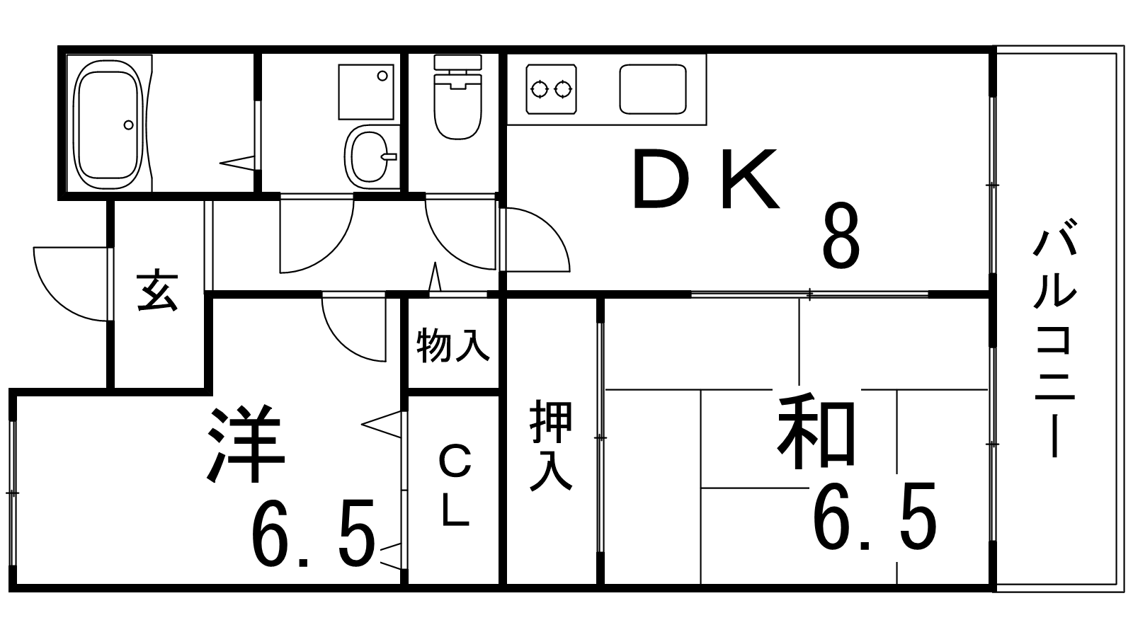 - DK8帖、和室6.5帖、洋室6.5帖