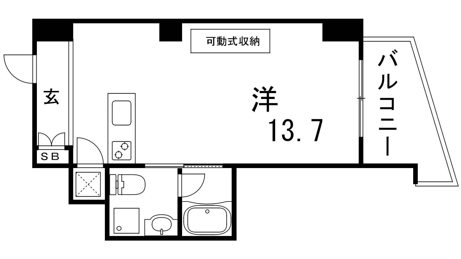 デザイナーズBigワンルーム♪光インターネット無料♪可動収納でレイアウト自由自在