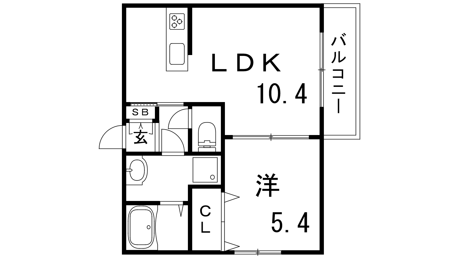 - 洋室5.4帖、LDK10.4帖