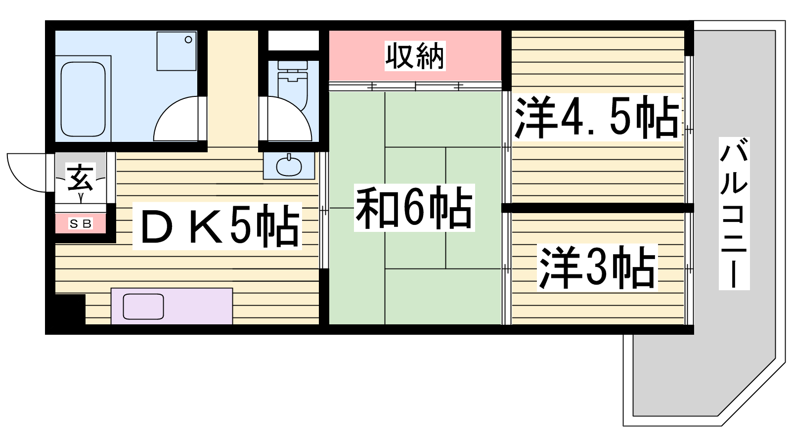 - DK5帖、和室6帖、洋室4.5帖、洋室3帖