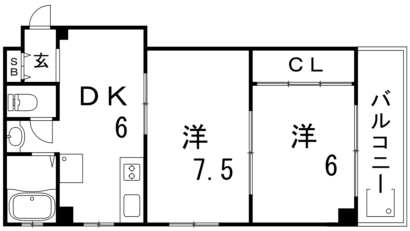 - DK6帖、洋室7.5帖、洋室6帖