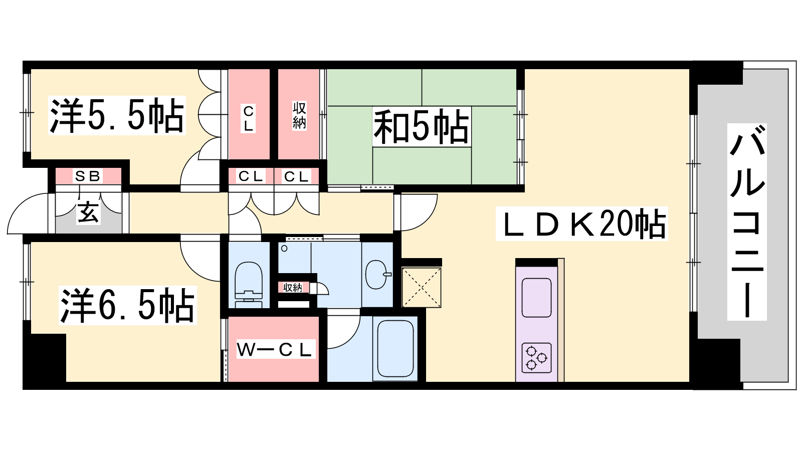 - LDK20帖、洋室6.5帖、洋室5.5帖、和室5帖