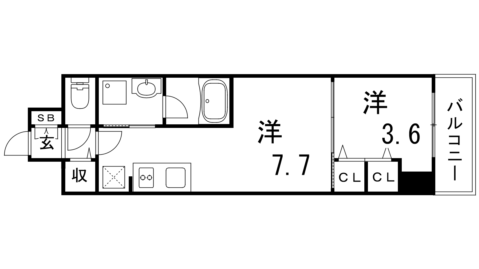 - DK7.7帖、洋室3.6帖