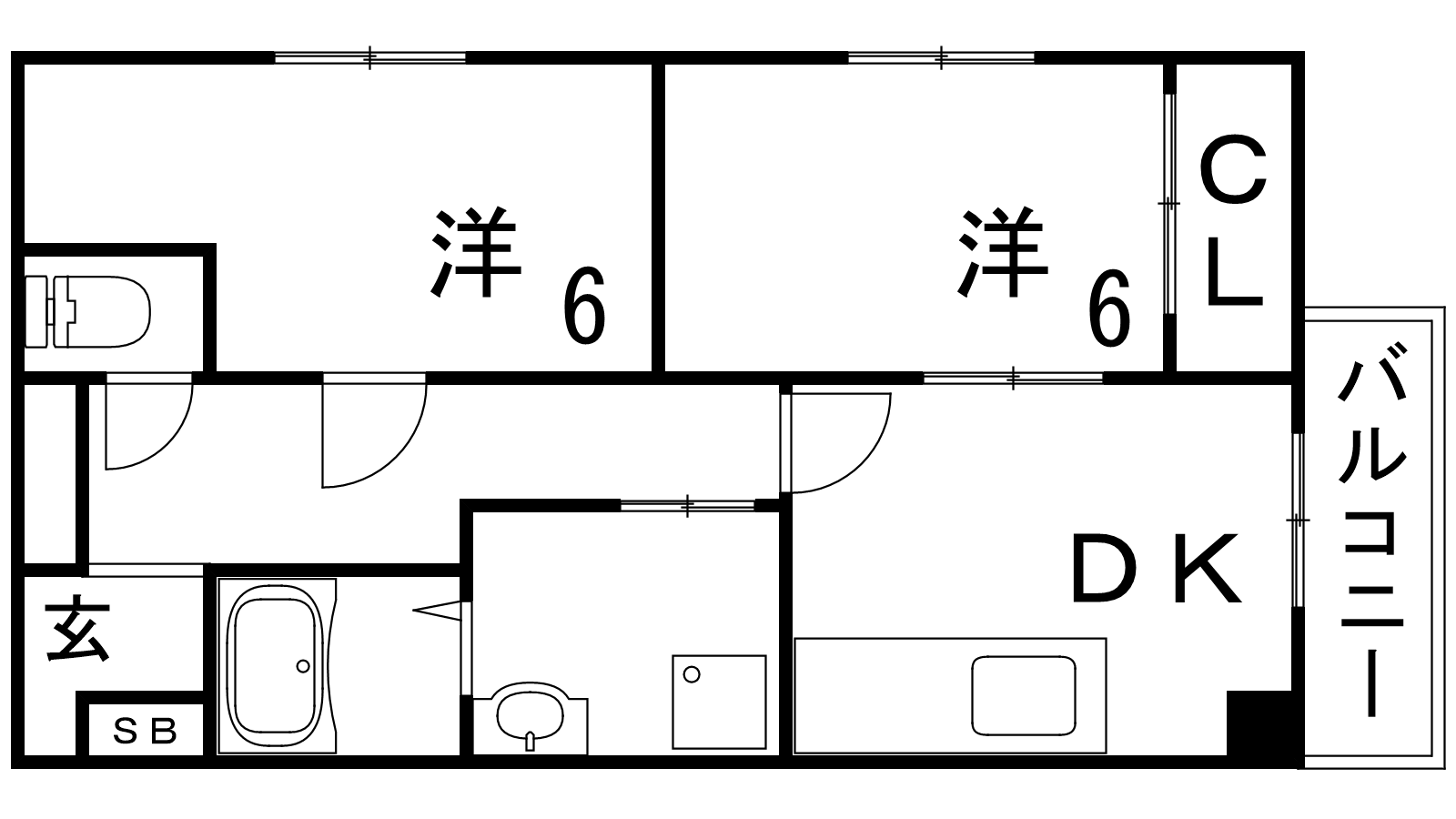 - DK5帖、洋室6帖、洋室6帖