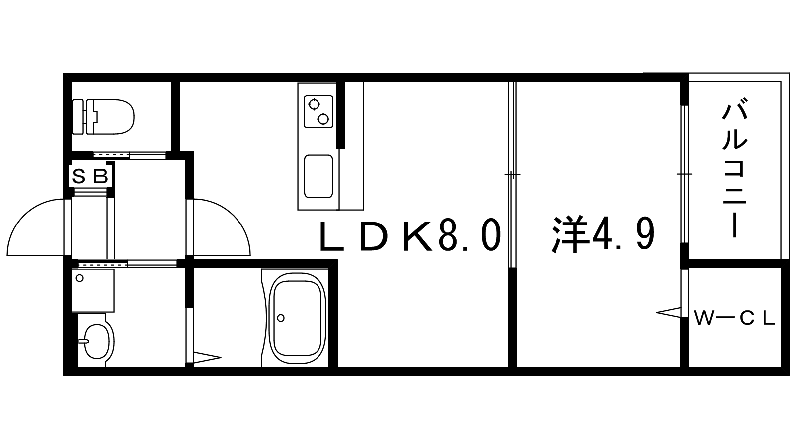 - LDK8帖、洋室4.9帖