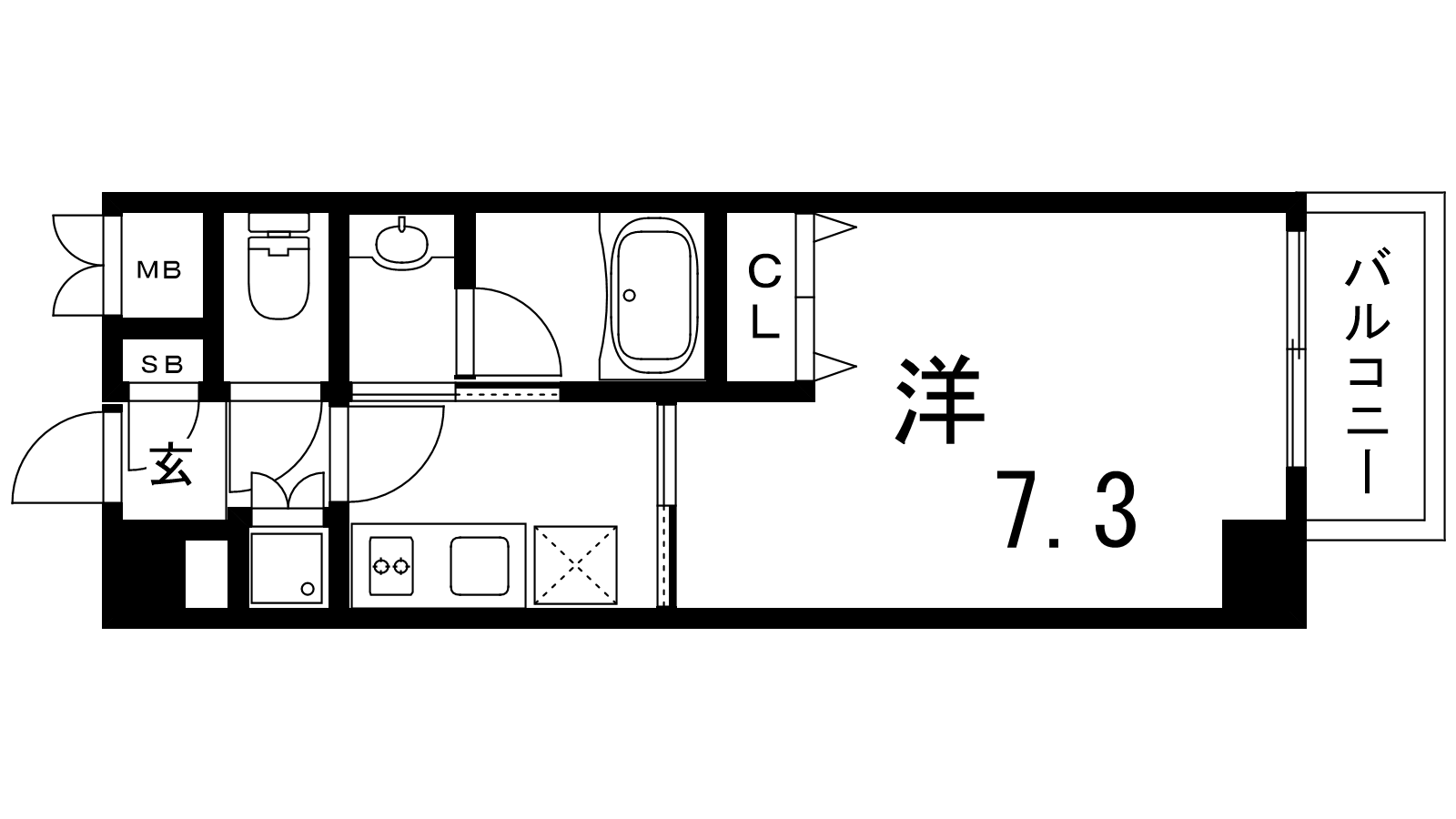- K2.5帖、洋室7.3帖