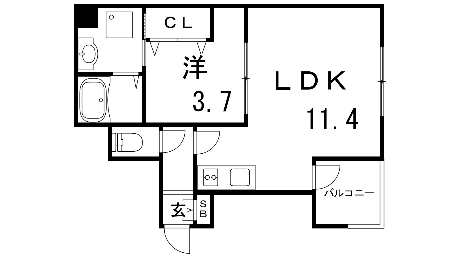 - 洋室3.7帖、LDK11.4帖