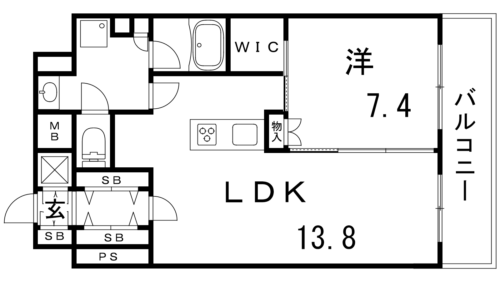 - LDK13.8帖、洋室7.4帖